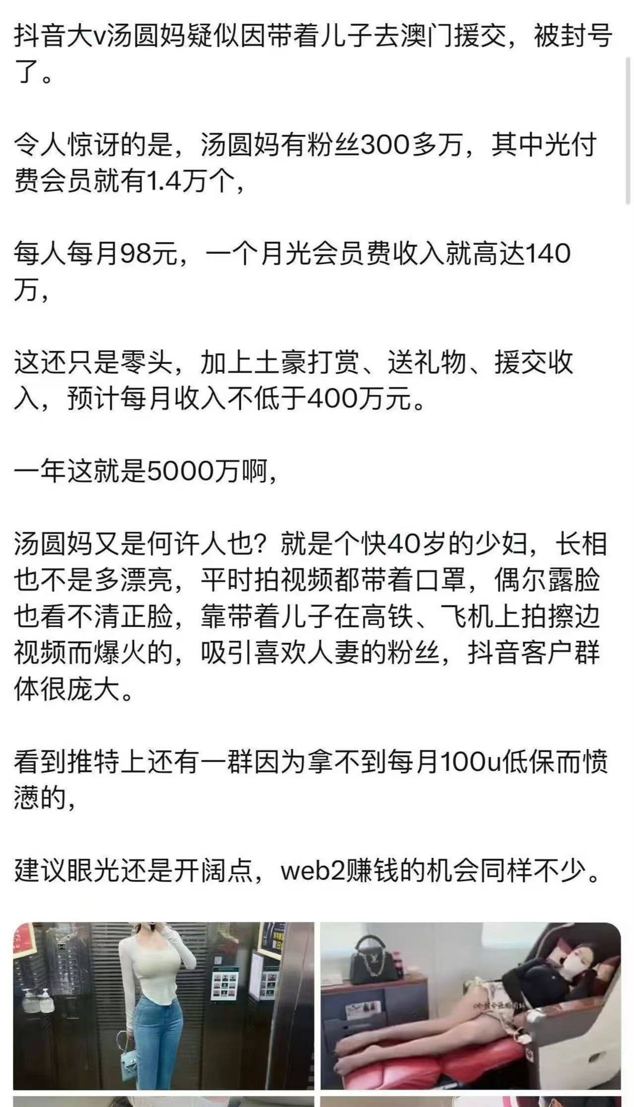 带着 儿子 去 援交 的 汤圆妈 被封了 #抖音 #封号