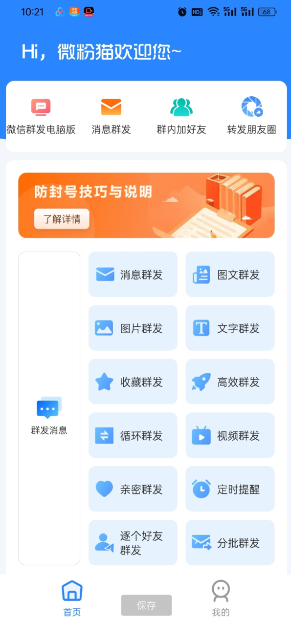 【软件介绍】:微粉猫是一款功能齐全、操作简单、安全高效的微商工具,带有循环群发、消息群发、客源拓展、朋友圈运营、好友管理等几大功能,让您的工作生活更加便利。